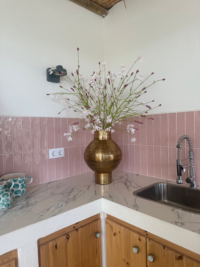 This Pampas grass bouquet adds subtle elegance to our master bedroom. It adds glow to it and fills a bit of an empty corner.