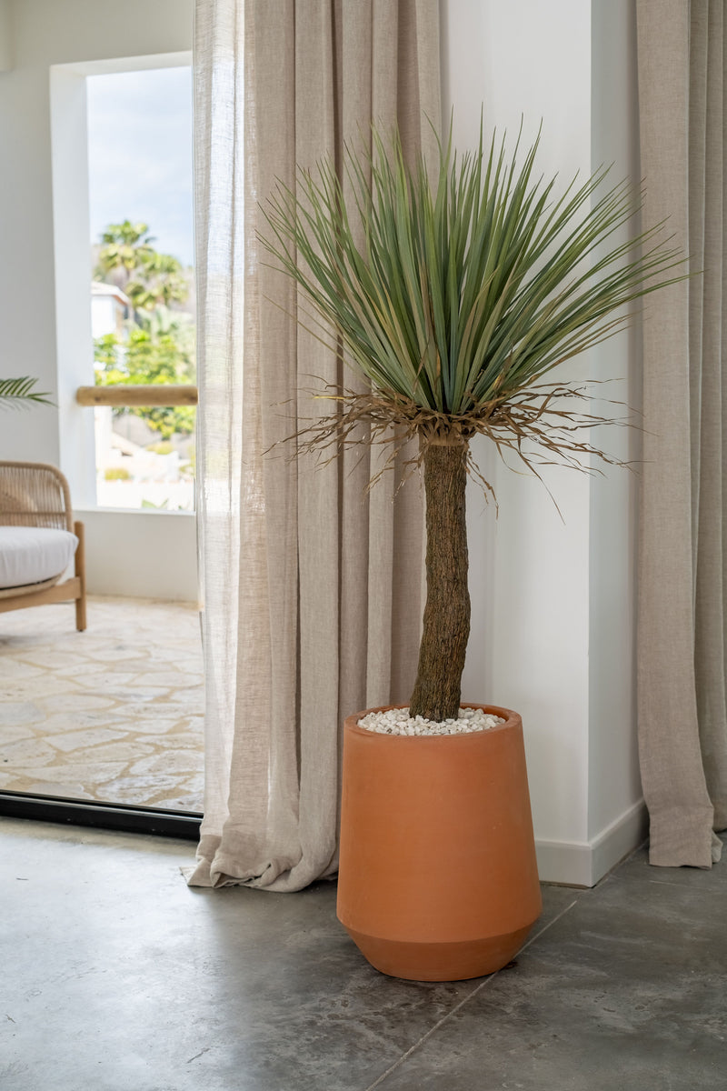 This plant came in a beautiful pot and really gave the final touch to a bedroom in one of our projects. Martina Florique really knows how to add green into a space without taking it up the whole room.